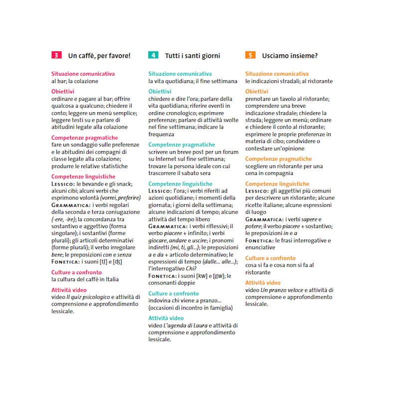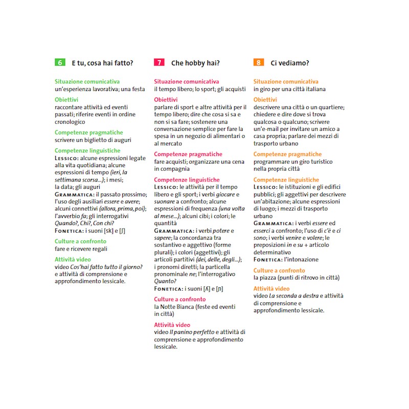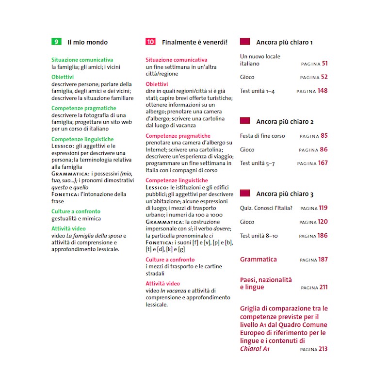 После проработки трех учебников итальянского Chiaro, соответствующих трем уровням владения языком, учащиеся получают достаточные навыки для ведения бесед на повседневные темы, написания эссе, писем и других текстов, анализа прочитанных и прослушанных фрагментов.